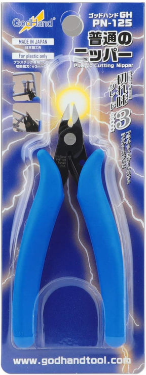 The GodHand GH-PN-125 'normal' plastic cutting nipper offers efficient, clean part removal from plastic kit sprues. Suitable for plastics only, these nippers can be used on PS, PP, ABS, and PE resins to 3mm. With doubled-edged cutting, this nipper operates in the traditional method of side cutters or diagonal cutting pliers.